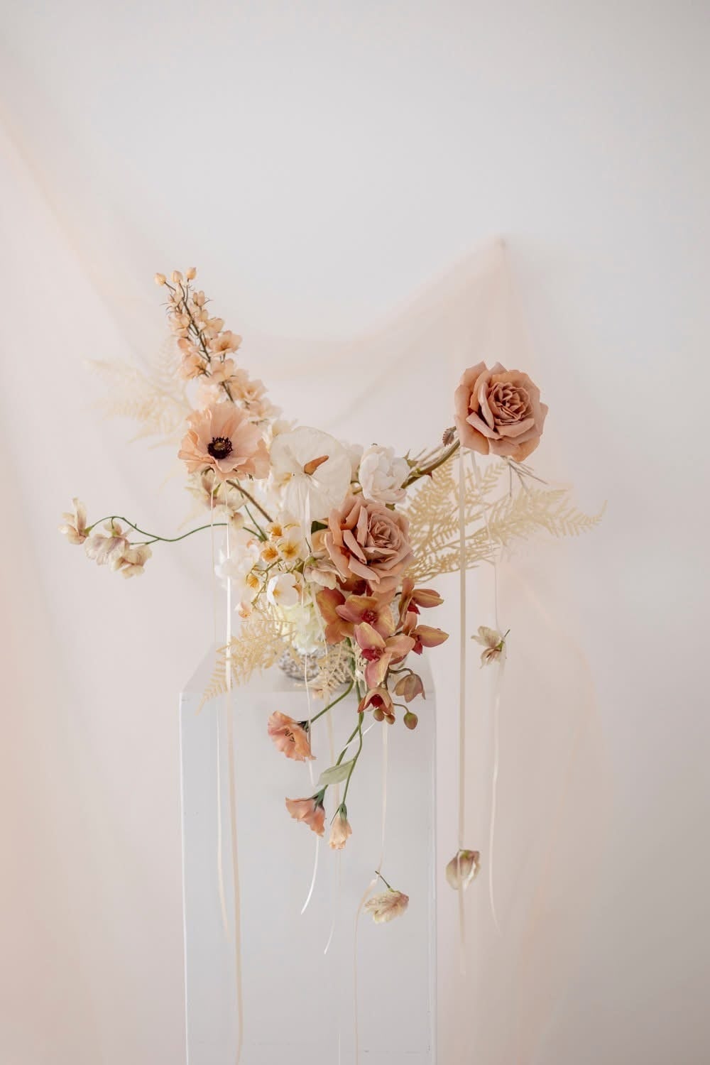ニュアンスのある優しいピーチベージュの装飾とチュールのset