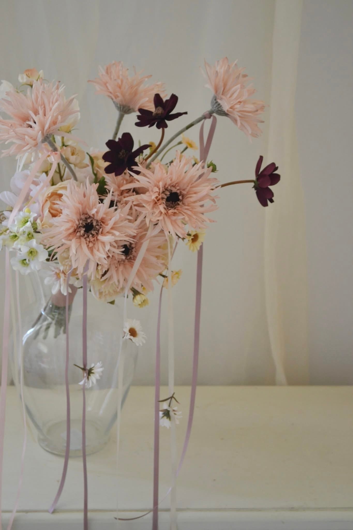 チョコレート色のコスモスで大人っぽさも感じるブーケは